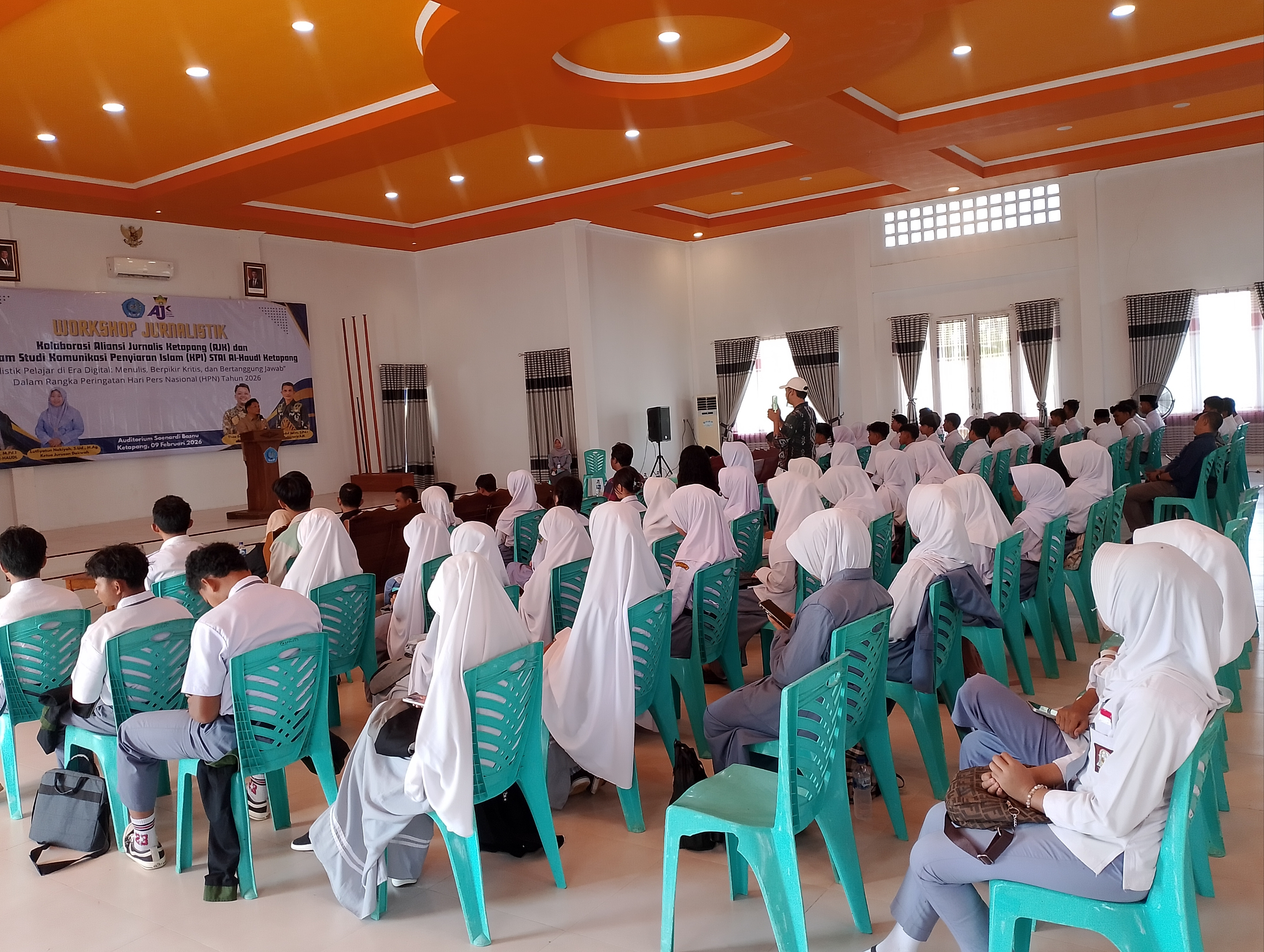 Dengan antusias ratusan pelajar ikuti Workshop Jurnalistik - AJK dan KPI STAI Al-Haudl dihari Pers Nasional 2026.