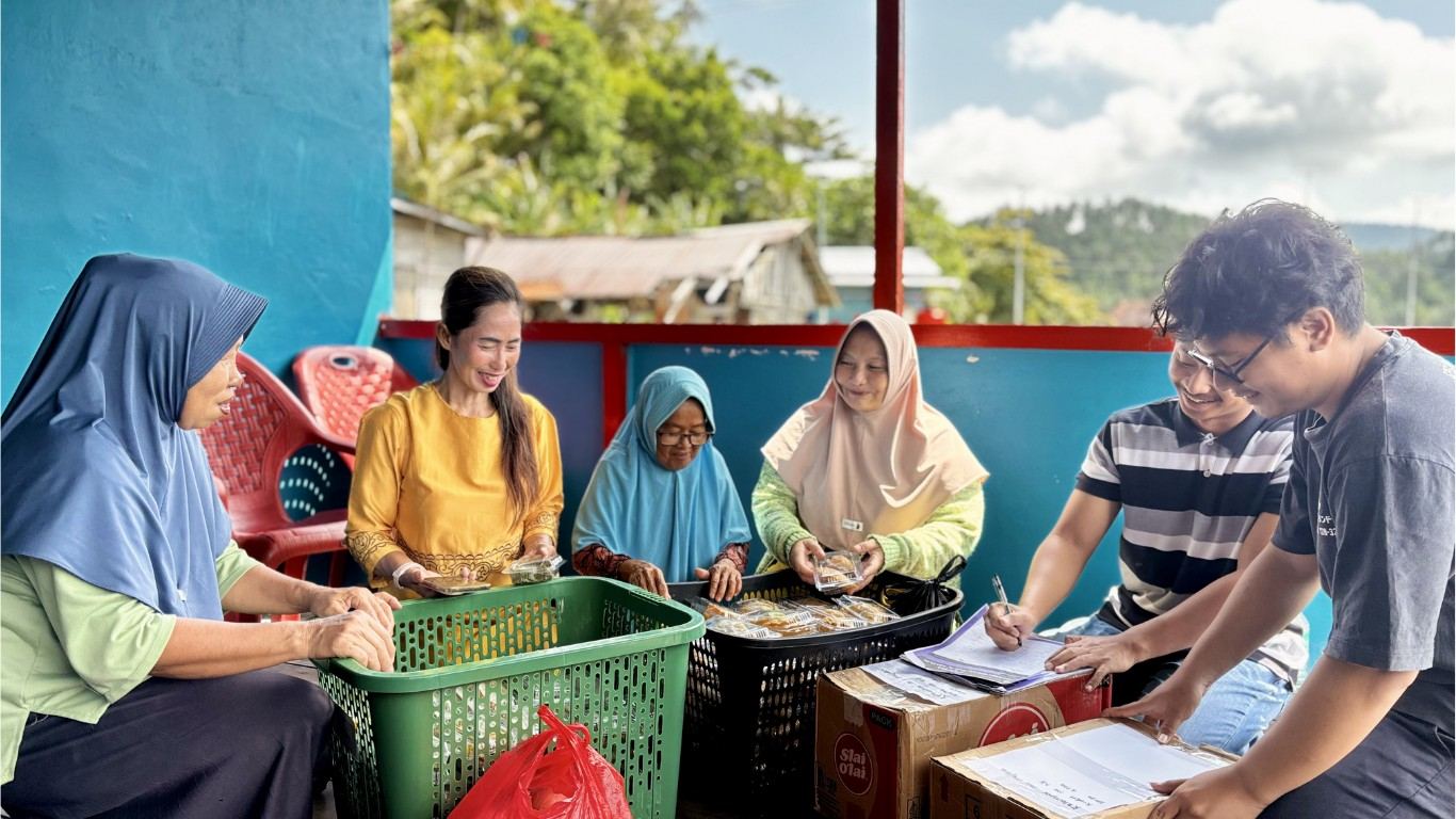 Warga Dusan Kelazar, Dessa Pelapis, mengumpulkan produk UMKM ke pesko CSR untuk dipasarkan ke Pulau Penebang. Poto : ist.